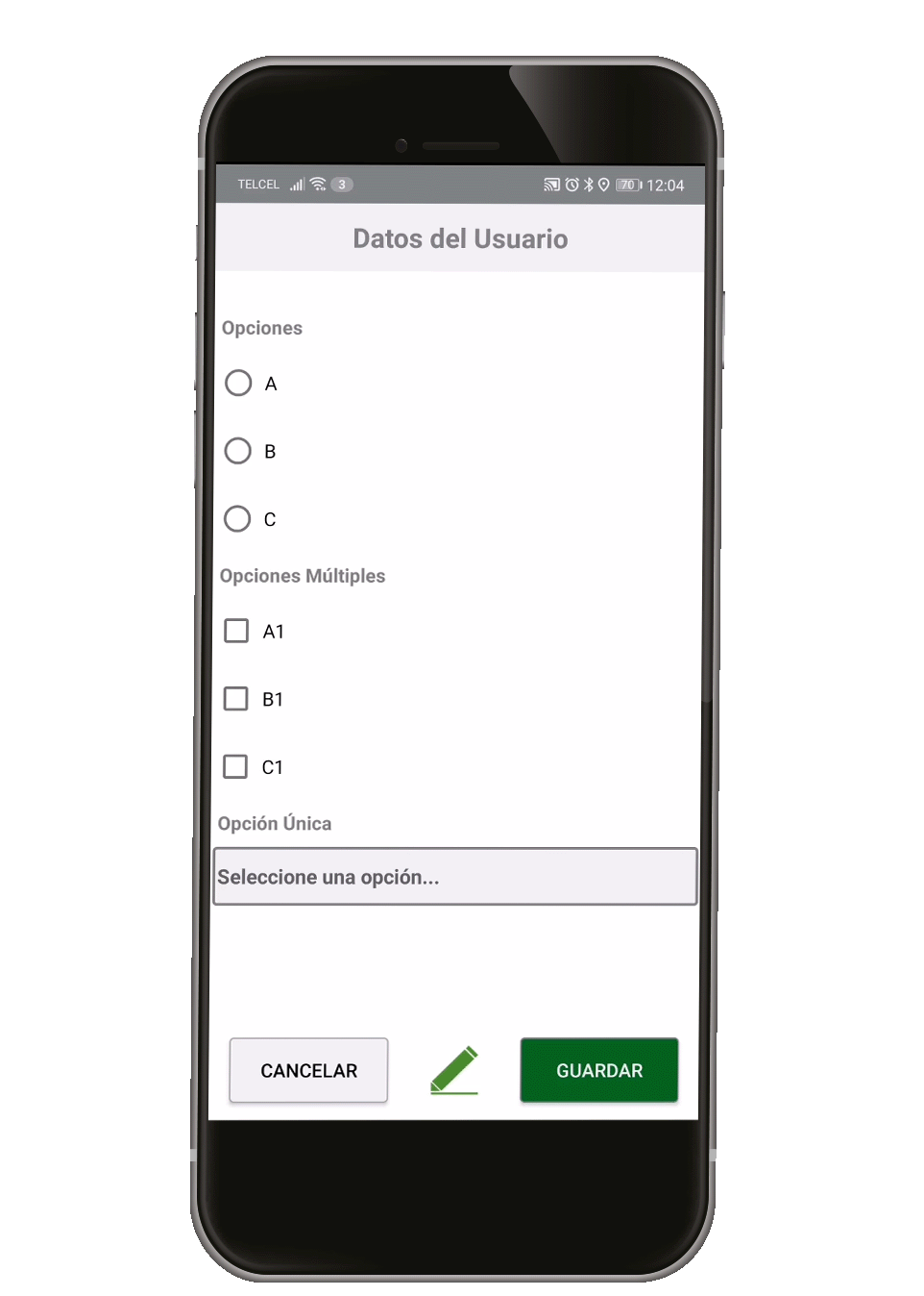 Evidence permite campos con selectores de opción múltiple, opción única, fecha y hora. Estos campos reducen el tiempo de captura ya que el personal en campo sólo necesita presionar sobre ellos para elegir las opciones o abrir reloj para marcar la hora y un calendario para la fecha.