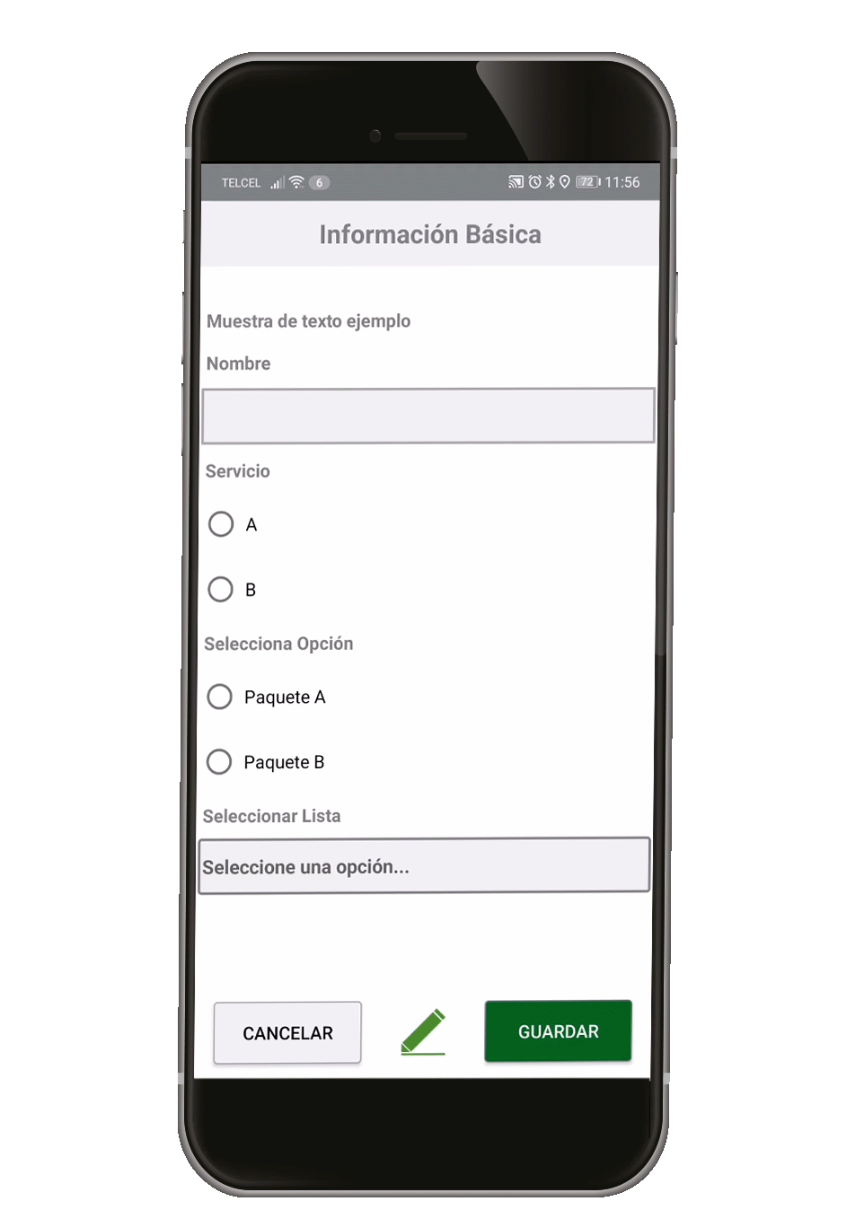 La aplicación móvil Evidence cuenta con la herramienta de formularios, los cuales consisten en archivos digitales que se crean desde la plataforma Ubiqo y llegan a la aplicación para ser llenados por el personal en campo.